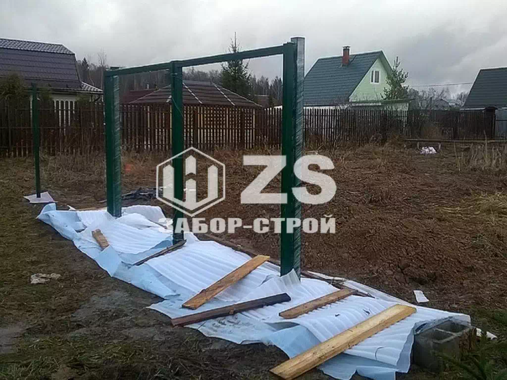 - Металлический штакетник 70 метров с забивными столбами