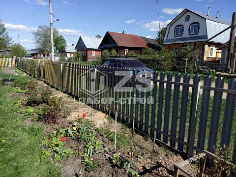 - Забор с бетонированием столбов из евроштакетника 45 метров