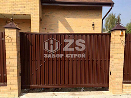 - Забор с кирпичными столбами